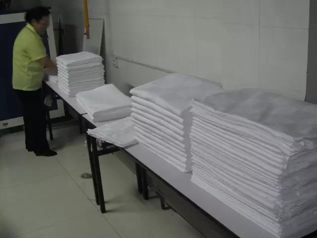 平燙過程中兩人要配合一致把布草放平放齊,成一個水平線,送入燙平機時一定要注意布草的放置拖地現象以免弄臟;